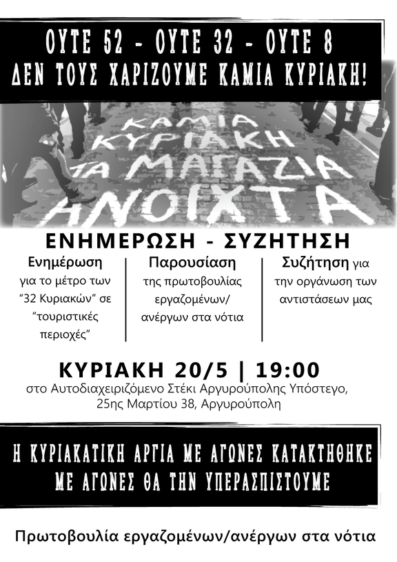 Ενημέρωση - συζήτηση για την Κυριακάτικη αργία