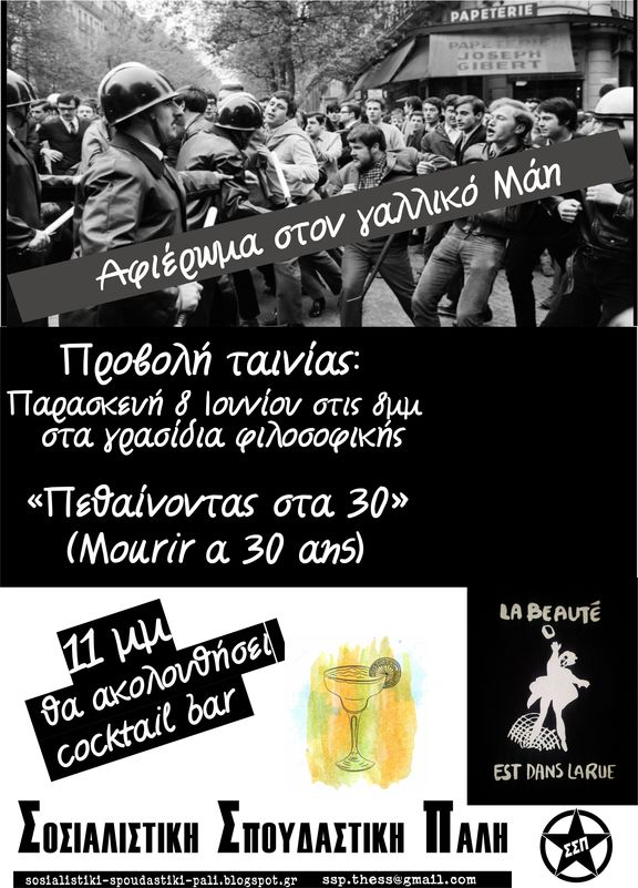 ΣΣΠ: Προβολή της ταινίας "Πεθαίνοντας στα 30" για το Μάη του 68'