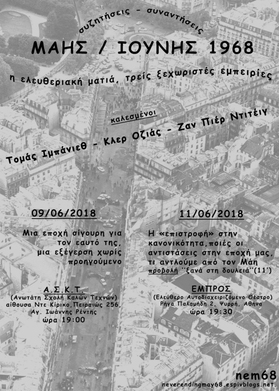 Μάης / Ιούνης 1968 - η ελευθεριακή ματιά, τρεις ξεχωριστές εμπειρίες