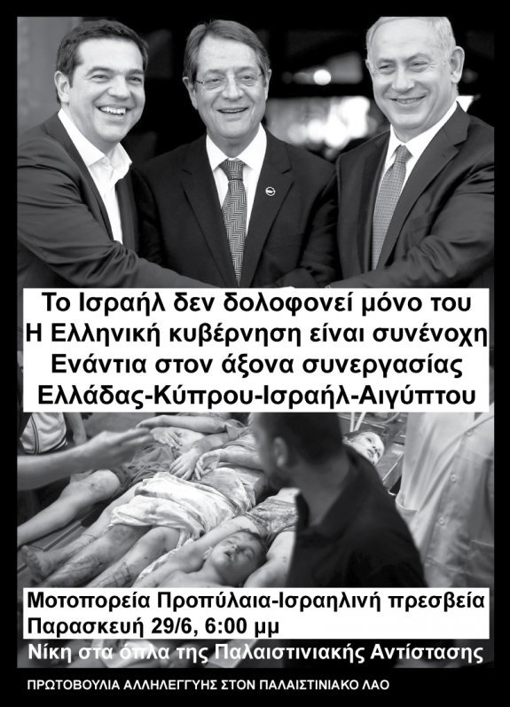 Το ελληνικό κράτος και η κυβέρνηση έχουν βαμμένα τα χέρια τους με το αίμα των Παλαιστίνιων.