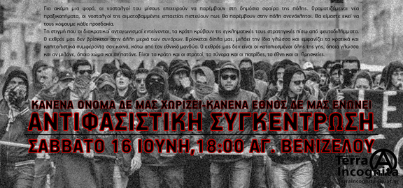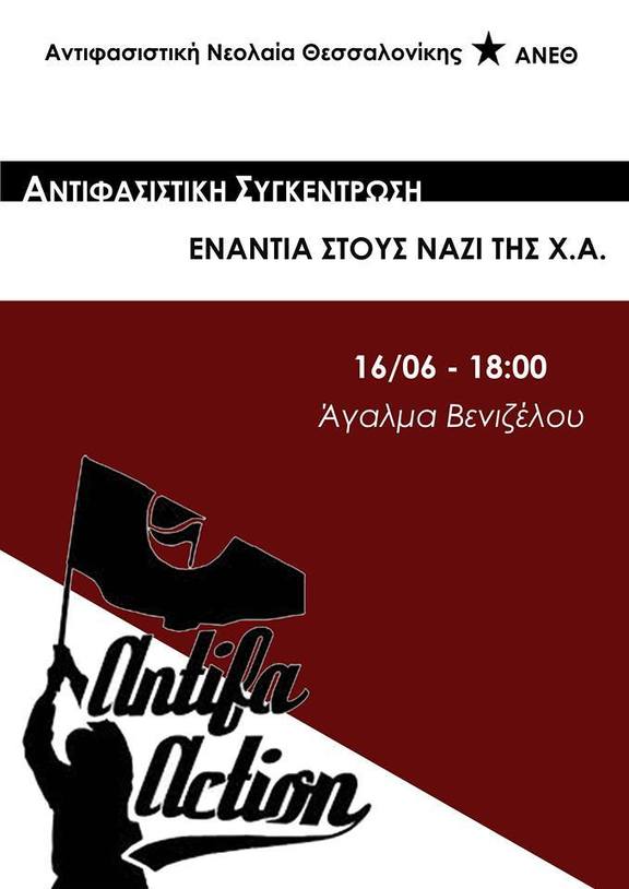 Καλούμε στην αντιφασιστική συγκέντρωση στο άγαλμα βενιζέλου, 16/6 στις 18:00