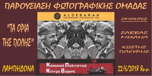 Το Κοινωνικό - Πολιτιστικό Κέντρο Βύρωνα και η Φωτογραφική Ομάδα ALDEBARAN σας προσκαλούν στην παρουσίαση του υπό έκδοση συλλογικού φωτογραφικού project