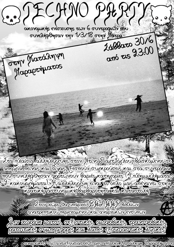 Techno party οικονομικής ενίσχυσης των 6 συντροφιών που συνελήφθησαν στην 1/3/18