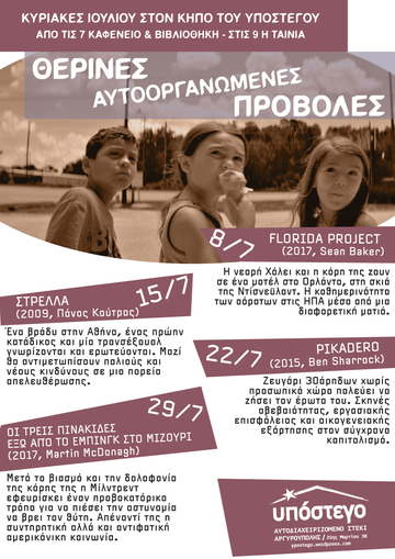 Tις Κυριακές του Ιουλίου στο Υπόστεγο θερινές αυτοοργανωμένες προβολές στον κήπο.