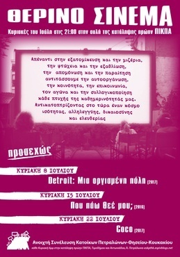 ΘΕΡΙΝΟ ΣΙΝΕΜΑ τις Κυριακές του Ιούλη στις 21:00 στην αυλή της κατάληψης πρώην ΠΙΚΠΑ